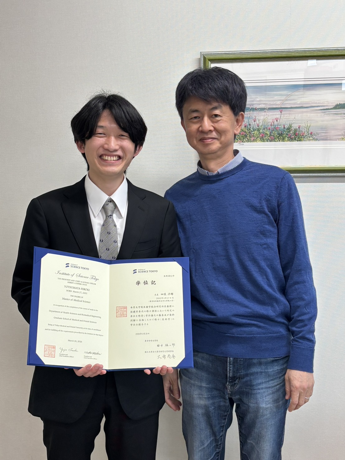 2026.3.26_四俣くんの修士課程卒業式後のツーショット写真、巣立っていきます。